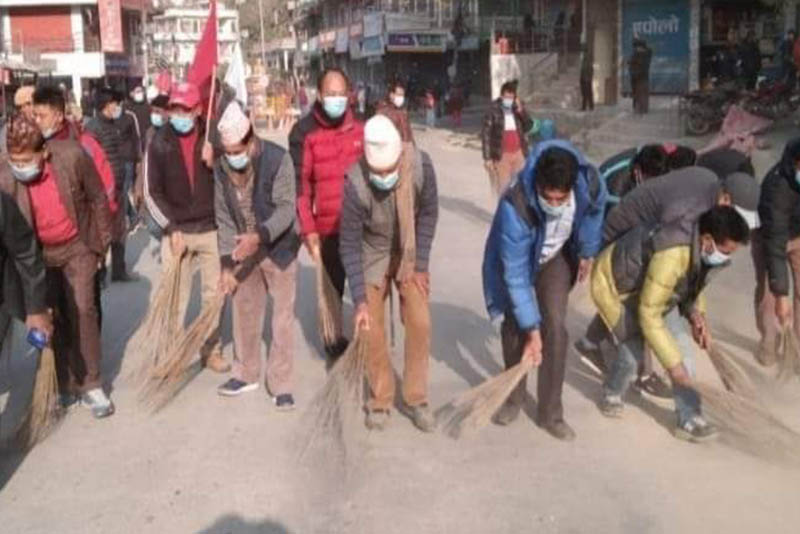 आन्दोलनकारीहरू सडक र सडक पेटी बढारिरहेका थिए भने सरफाइमा यसअघि देखि निरन्तर रुपमा लागिरहेका रामेछापका सहयोगीहरूले बढारेर थुपारेको धुलो र फोहोर उठाइरहेका थिए।