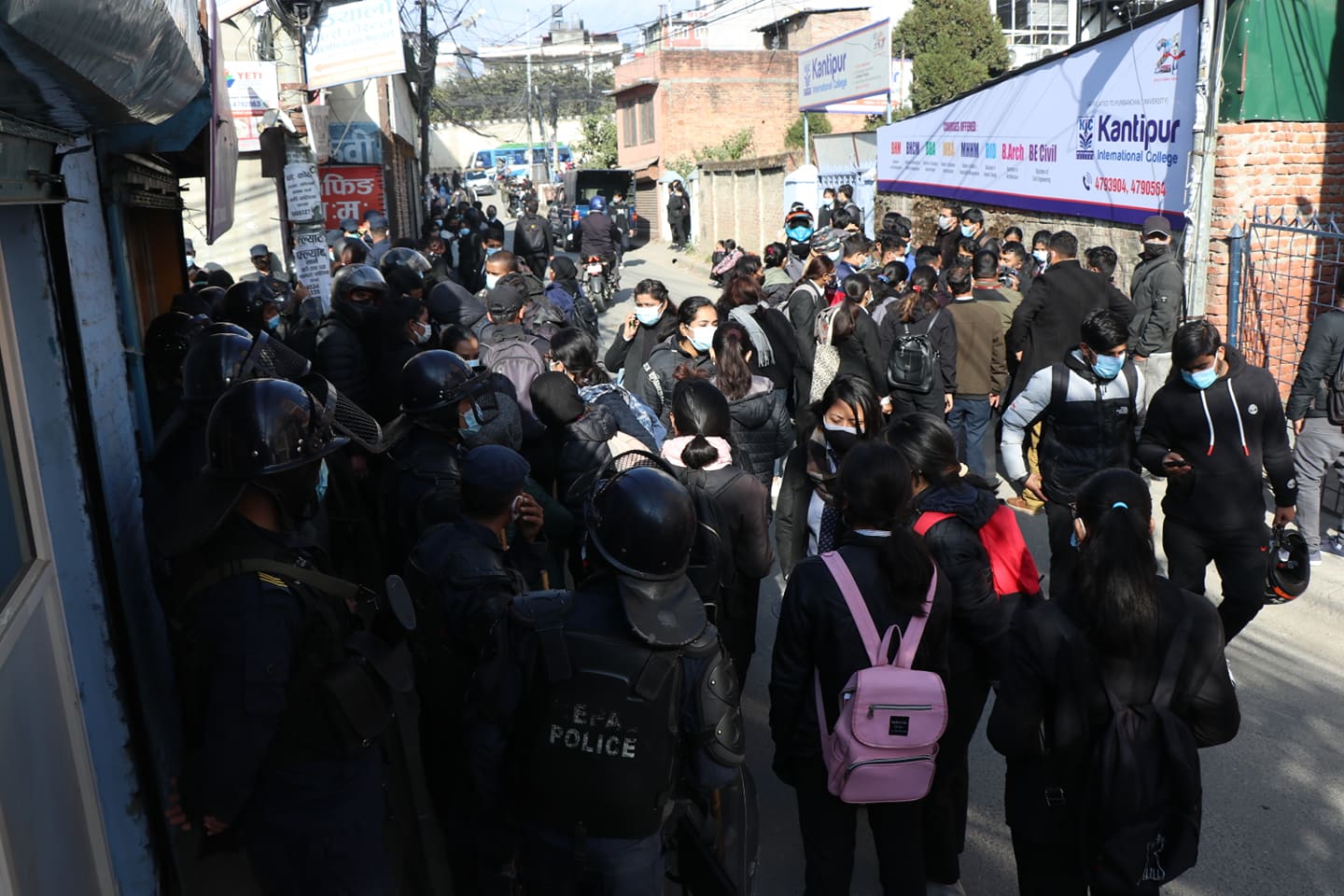 प्रहरीले स्थितिलाई नियन्त्रणमा लिन लाठी चार्ज गरेको जनाएको छ । प्रहरीले केही विद्यार्थीलाई नियन्त्रणमा पनि लिएको छ ।