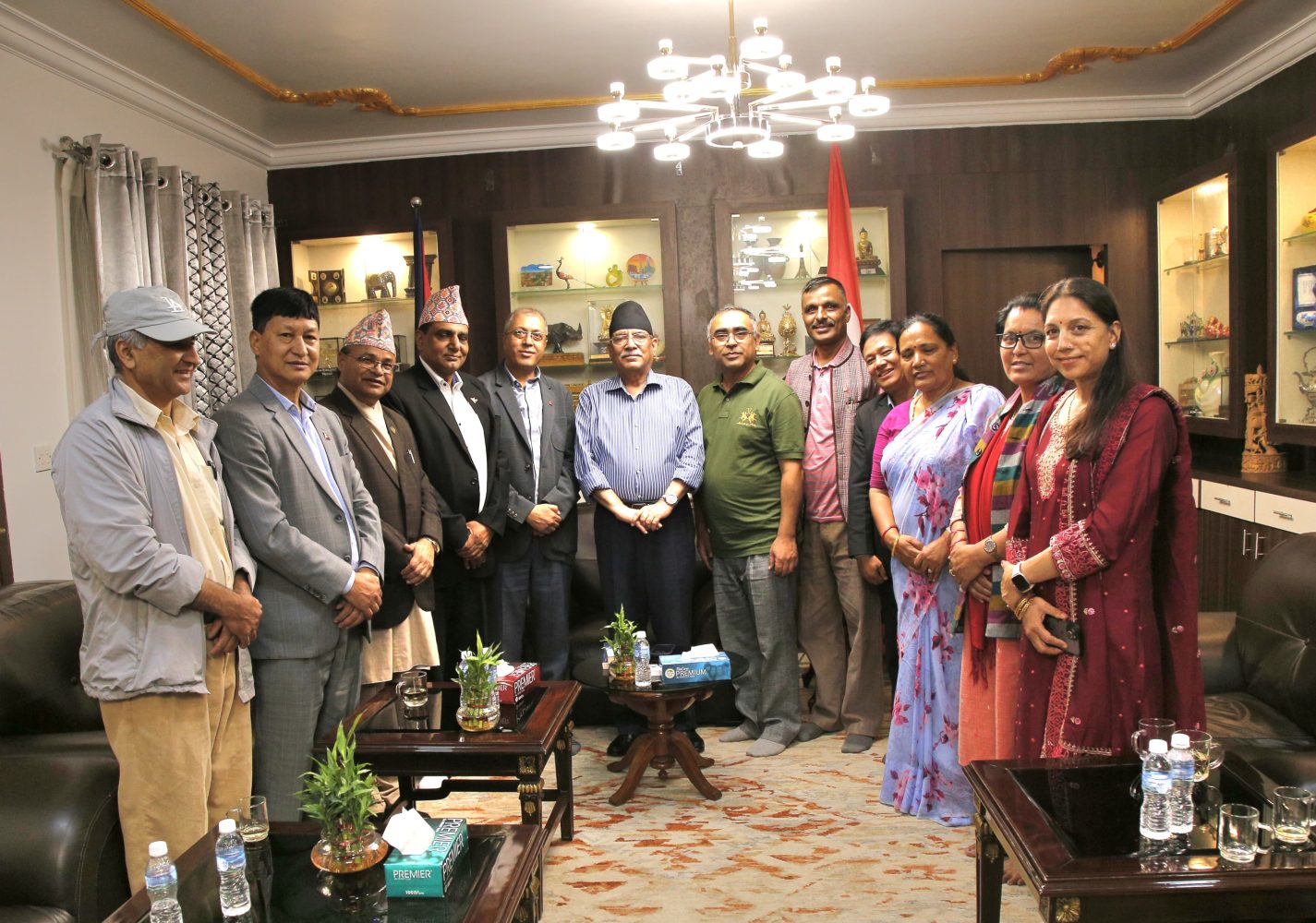 सर्वदलीय भेटमा सहभागीहरुले नदी किनाराका जग्गा छाड्नुपर्ने अदालतको फैसलापछि काठमाडौंमा ठूलो समस्या सुरु भएको बताएका थिए । अदालतको आदेशअनुसार काठमाडौंको नदी, खोला र राजकुलो समेत दायाँबायाँ २०र२० मिटर छाड्नुपर्दा दशौं हजार घरपरिवार बिस्थापित हुने र पशुपति नाथ मन्दिर पनि सार्नुपर्ने अवस्था आउने बताए ।काठमाडौं महानगरपालिका प्रमुखले कार्यान्वयन गर्ने एकल निर्णय गरेपछि थप समस्या आएको भन्दै उनीहरुले यो फैसला कार्यान्वयन भएमा आर्थिक रूपमा अराजकता पैदा हुने बताए । आफूहरुले प्रधानमन्त्री केपी शर्मा ओलीसँग भेट गरेर भ्याकेटमा जान सुझाव दिएको र नेपाली कांग्रेसका सभापति शेरबहादुर देउवासँग भेट गरिसकेको जानकारी गराउँदै प्रतिनिधिमण्डलका सदस्यहरुले प्रमुख प्रतिपक्ष दलका नेता र पार्टी अध्यक्षको रुपमा प्रचण्डलाई भेट्न आएको बताएका थिए । प्रतिनिधिमण्डलमा नेकपा एमालेका नेता राजन भट्टराई, काठमाडौं महानगरपालिकामा पूर्वप्रमुख विद्यासुन्दर शाक्यलगायतको सहभागिता रहेको थियो ।