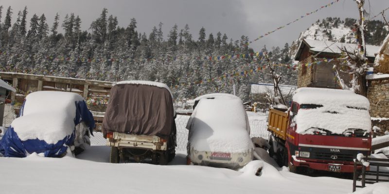 हिउँले यहाँका बाटाघाटा सेताम्मे भएका छन् भने घर,मठमन्दिर गुम्बाहरु समेत हिउँमय देखिन्छ। हिउँ पर्दा चिसो बढे पनि डाँडाकाँडा र हिमाल हिउँले ढाकिएको दृश्यले सबैलाई सबैलाई चकित पारेको छ ।