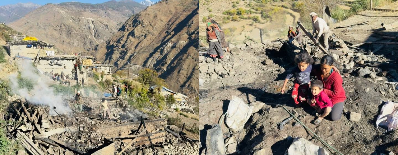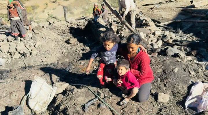हुम्ला । हुम्लाको खार्पुनाथ गाउँपालिका–४ माझाँ गाउँमा भएको आगलागीले शोभनकुमार रावतको घर पूर्ण रूपमा नष्ट भएको छ । राती एक्कासी आगोलागी भएपछि ज्यान मात्र बचाउन सकेको शोभनकुमार रावतले बताउनु भयो । आगलागीबाट रावतको घर पूर्ण रुपमा जलेर नष्ट भएको छ । आगलागीबाट घरमा रहेको नगद ७ लाख अन्य जिन्सी २६ लाखा सम्पत्ती नष्ट भएको पीडितले बताएका छन् । बच्चाहरु घर बाहिर गएकोे समयमा एक्कासी आगलागी हुदा घरपरिवार ज्यान जोगाउन धौ धौ भएको रावतले बताउनुभयो ।